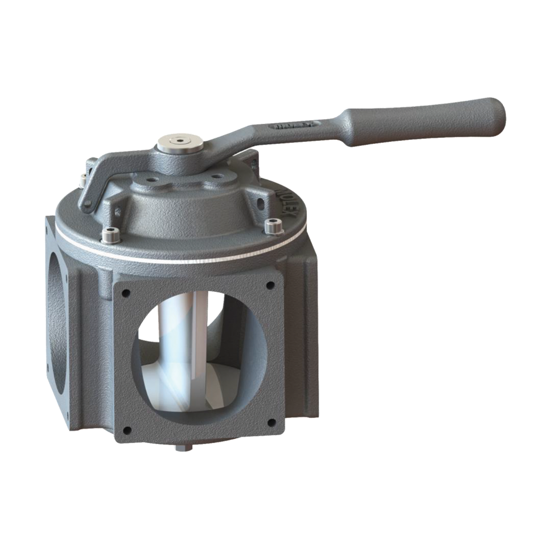 The manually operated four way RFV is incorporated into a vacuum system, allowing a vacuum or pressure to be created in the tank.