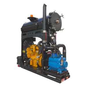 An all-in-one engine-powered vacuum tower assembly built for standalone operation. This unit features a CAT 3054 CAN 80HP diesel engine paired with a TRVX 1007 liquid ring vacuum pump, mounted with isolation for reduced vibration. Designed for high-flow performance and quiet running, the assembly is fully plumbed and built for heavy-duty vacuum applications.